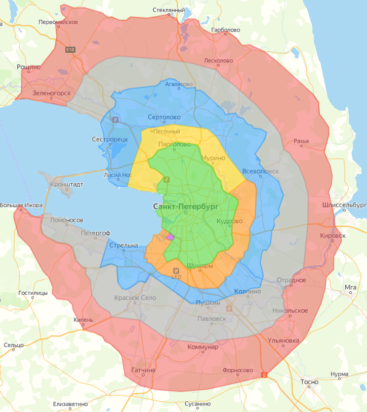 С расположением зон доставок (со стоимостью доставок, актуальной ПО 31.10.2024!) можно ознакомиться, щёлкнув на карту ниже.
