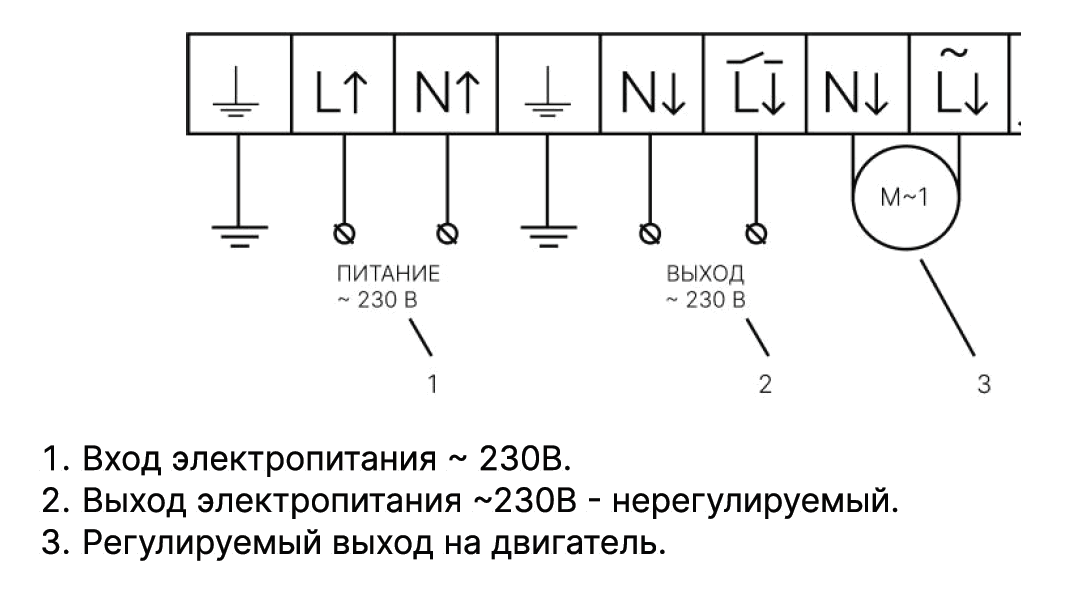 Рекомендуется подключать к регуляторам электродвигатели со встроенными термоконтактами тепловой защиты. Если двигатель не имеет термоконтактов, необходимо установить устройство тепловой защиты электродвигателя.