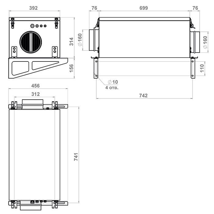 - Подключение воздуховодов: 2x160 мм
