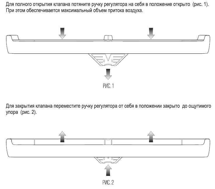 Клапан устанавливается в фальц-рамы при помощи саморезов и не портит внешний вид стеклопакета. Воздух поступает в помещение при закрытой створке окна через открытый шибер клапана без сквозняка. Поток поступающего воздуха регулируется с помощью выдвижной заслонки, которая открывает/закрывает заслонку в раме. В помещение не попадают пыль и шум снаружи, а влажность сохраняется на заданном уровне. На раме и стеклах не образуется конденсат.