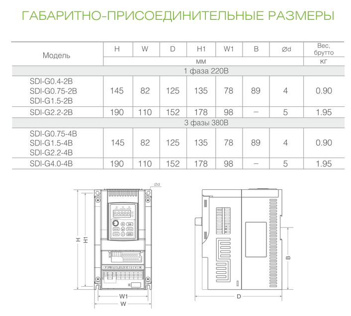 Частотный преобразователь SDI-G1.5-2B (1,5 кВт, 220В)