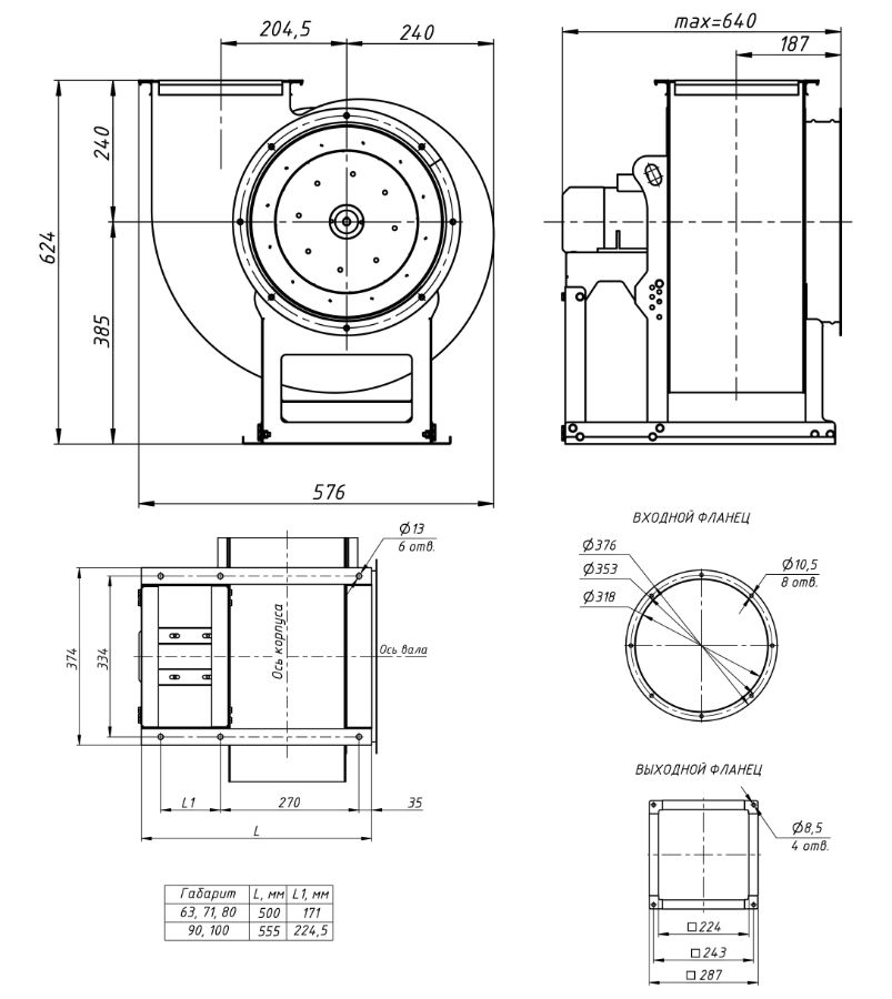 Радиальный вентилятор среднего давления ВР 280-46-3,15 2,2 кВт